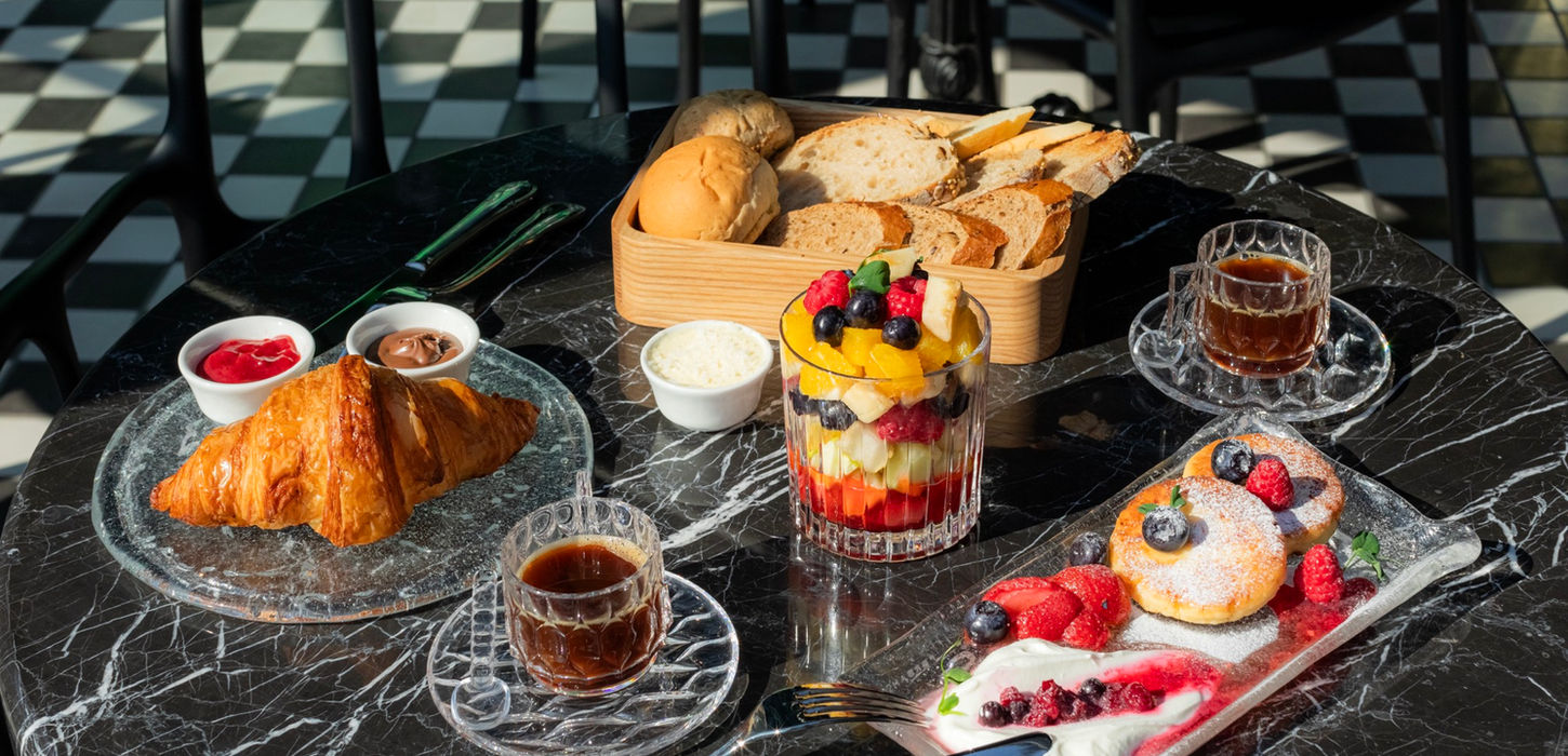 Our delicious breakfast menu offers a variety of sweet and savory dishes, served on the terrace floor.